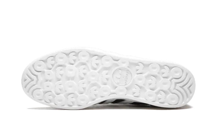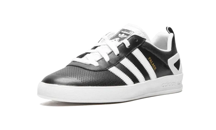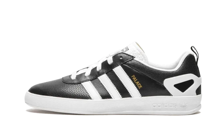 The adidas Palace Pro "Black Leather" is a collaboration from Palace Skateboards and adidas from 2015. The Palace Pro is a model designed by the UK-based skateboard and streetwear brand taking inspiration from classic soccer models from the adidas archives such as the Gazelle and Samba. This colorway features a premium black leather upper with a perforated treatment at the toe and heel. The Core Black base is accented with Footwear White accents for the tongue, 3-Stripe branding, heel counter, and rubber sole. Palace branding is added in gold foil to complete the vintage-inspired look.