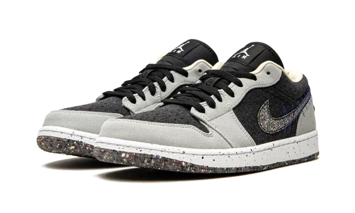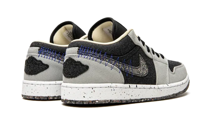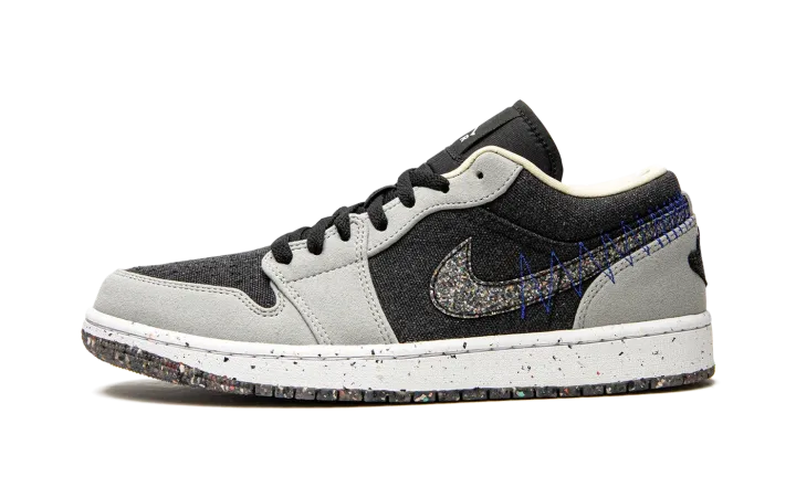 The Air Jordan 1 Low Crater "Light Smoke Grey" is an environmentally friendly version of the retro basketball shoe that was released in Fall 2021. A core offering from Nike's "Move to Zero" initiative that places an emphasis on sustainability, the Jordan 1 Low Crater is an alternative to the standard Air Jordan 1 Low that is constructed from recycled materials. A lightweight black textile appears on the shoe's perforated toe, mid-panel, and collar. The overlays are constructed from grey suede. A multicolor, threaded Swoosh composed of Nike Grind straps can be found on both sides and a modified, raised "Wings" graphic appears on the heel. Multicolor speckling on the white midsole and a Nike Grind outsole complete the look.