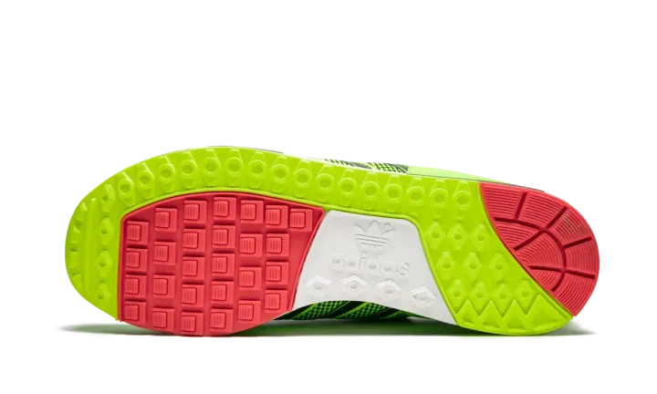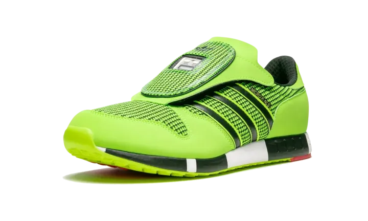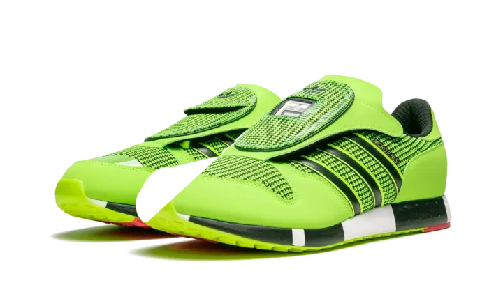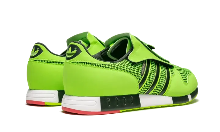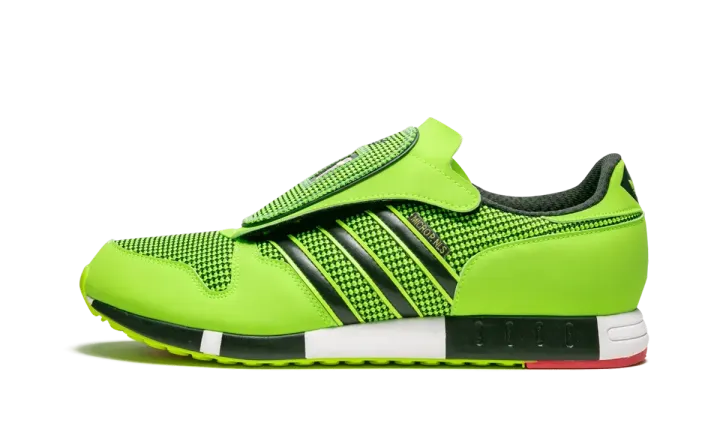 This vibrant colorway of the adidas Micropacer OG originally released back in 2015. A Solar Yellow leather upper is accented black-speckled mesh panels on the side panel and toe box. The same pattern is also used on each tongue. Additional details include black leather Three Stripes on each panel, a velcro lace shroud, and bright red sections across the outsole. The adidas Micropacer OG's main detail is the functional microprocessor embedded into the the left tongue to calcuate speed, distance, and calories burned, a true innovation when the model first debuted in 1984.