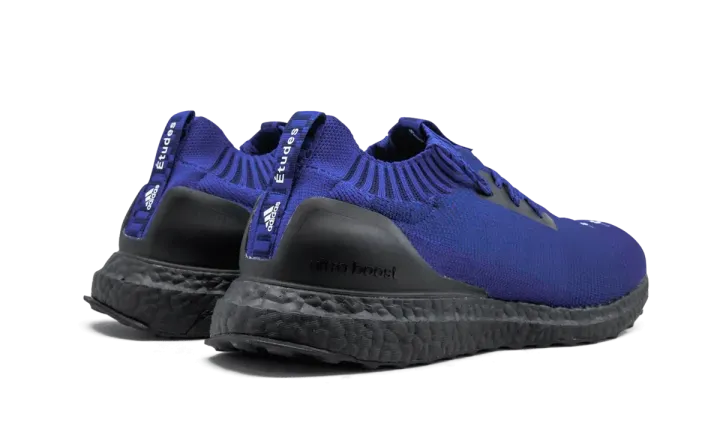 The Études x adidas UltraBoost Uncaged is a limited edition collaboration between the Parisian menswear brand and the Three Stripes. The unique colorway by Études uses the Uncaged edition of the popular Boost-cushioned running shoe and features a royal blue hue across the Primeknit upper with various textures and patterns incorporated into the weave. Black accents are also found across the shoe, including on the Boost midsole. A circular arrangement of white stars is added to the top of each toe to represent the flag of the European Union. The Études x adidas UltraBoost Uncaged released in September 2018 in limited supplies.