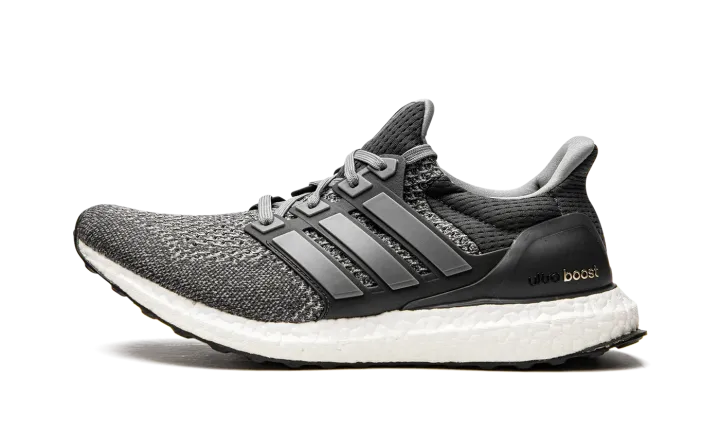 The Ultra Boost stays as appealing as ever in this clean colorway featuring a dark heather grey Primeknit upper and two-toned stripes on the cages.