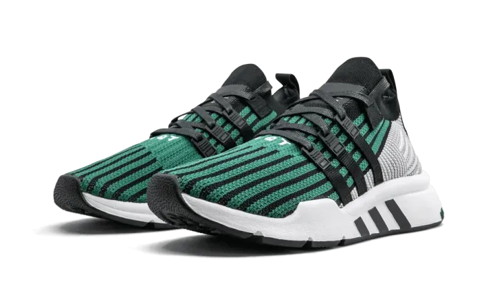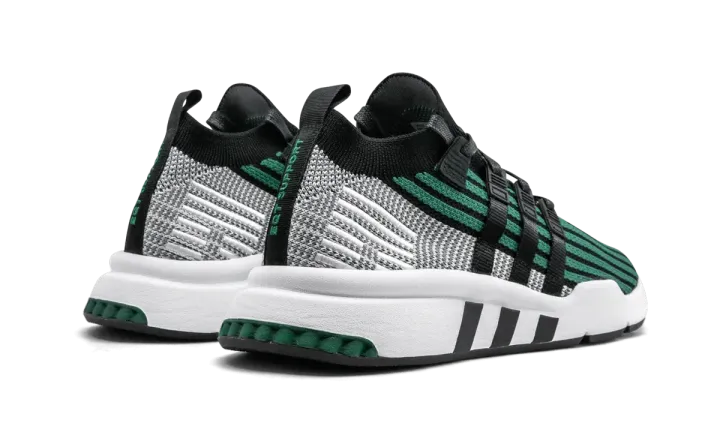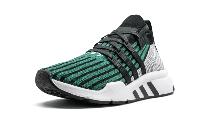 The adidas EQT Support Mid ADV Primeknit gives adidas fans an updated take on a classic EQT style. Featuring a striped, mid-cut Primeknit upper with a sock-like collar, the shoe comes in a refined green with black, grey, and white detailing. The Three Stripes serves as both the shoe's signature branding and the anchors for the lacing system eyelets. White EQT embroidery appears at the bottom of the lacing system on the adidas EQT Support Mid ADV Primeknit.