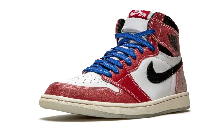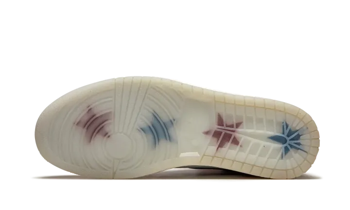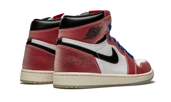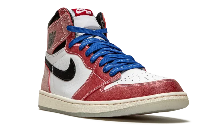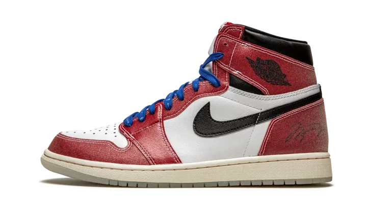 The Trophy Room x Air Jordan 1 High "Chicago" is a desirable collaboration between Marcus Jordan's sneaker boutique and Jordan Brand on Michael Jordan's first signature shoe. This version of Trophy Room's "Freeze Out" colorway includes alternate blue laces that were packaged only with friends and family pairs gifted by Trophy Room. Pairs sold via Nike SNKRS and elsewhere did not include blue laces. The colorway suggests that Michael was indeed "frozen out" of the 1985 NBA All-Star Game by his future Basketball Hall of Fame teammates. Several subtle nods to the "freeze out" appear on the shoe, beginning with the icy texture covering the red leather overlays found on the forefoot, eyelets, collar, and heel. Elsewhere, white leather appears on the perforated toe and on the mid-panel. Black shoelaces sit atop the white nylon tongue that features a red nylon tongue tag with "Nike Air" branding. A black leather Swoosh is located on either side and a black "Wings" emblem can be found on the collar. Michael Jordan's signature is printed onto the heel above the sail midsole. The translucent blue outsole dons blue and red stars to finish off the look. Release date: February 10, 2021.