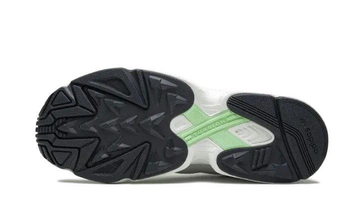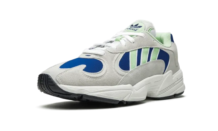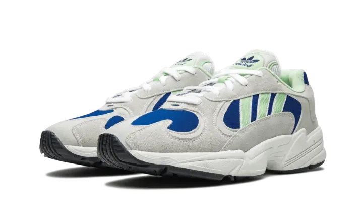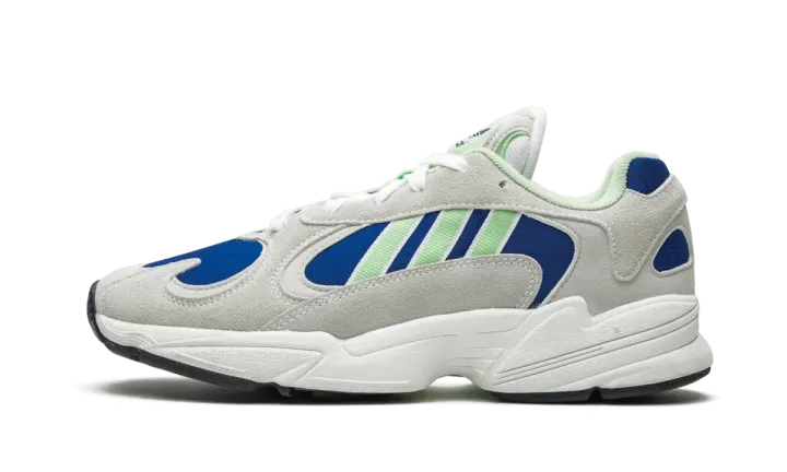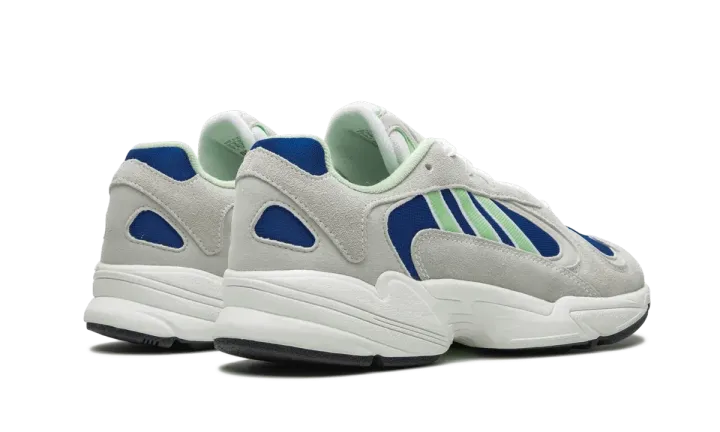 The adidas Yung-1 "Glow Green" shoe might be considered new-wave because it's riding the "dad shoe" trend, but in fact, it's a newly creative take on a shoe that's been around since the 1990s. Citing the original silhouette of the Yung-1, this model keeps things nostalgic with soft tones of tan, white, green, and blue. The mix of suede and mesh result in a layered look, while overlays create a wavy geometric pattern and the shoe rests upon a fashionably relevant chunky sole.