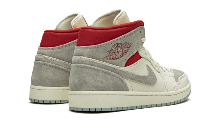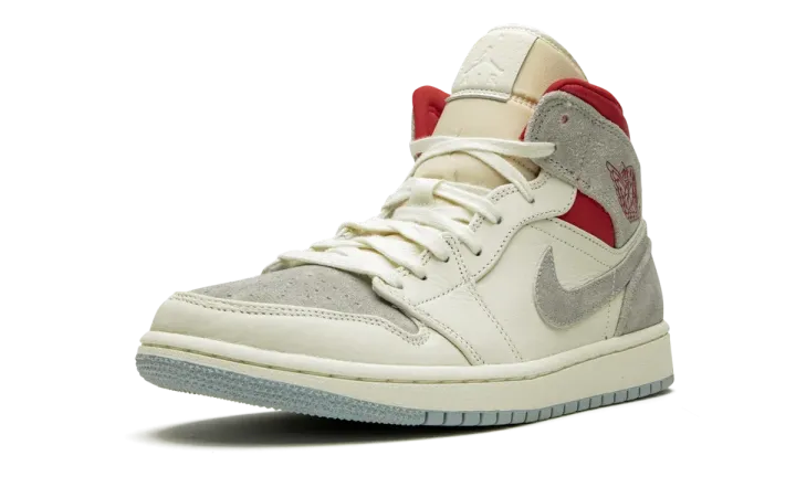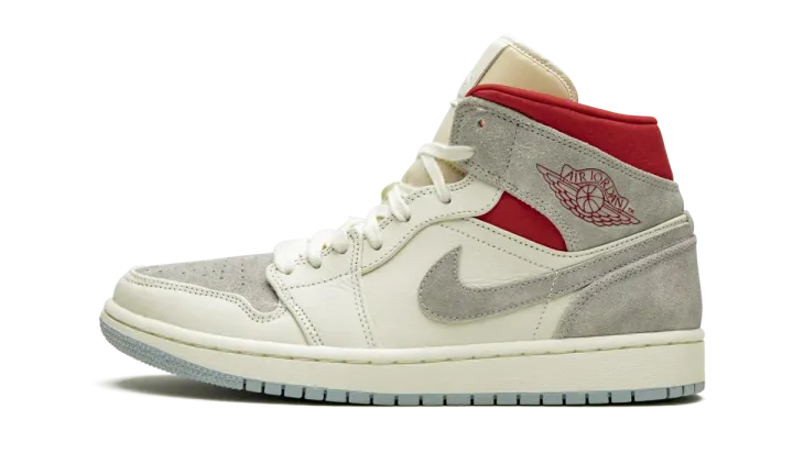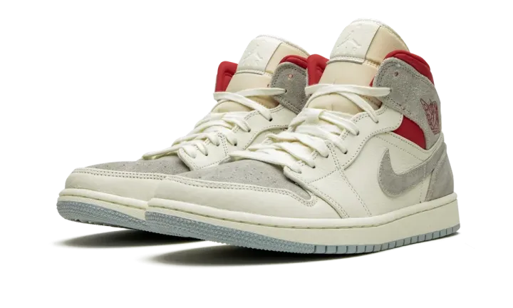 The Sneakersnstuff x Air Jordan 1 Mid "20th Anniversary" celebrates the footwear boutique's twentieth anniversary with a special "Past, Present, Future" pack. Clocking in under the "past" moniker, the Sneakersnstuff Air Jordan 1 Mid sports a premium cream leather base appearing on the mid-panel, eyelets and toe cap. Supple light grey suede covers the toe box as well as the heel panel and Swooshes. An underlying red nylon material appears around the collar. A red outlined Wings logo can be found on the collar with Sneakersnstuff opting for a simple cream midsole and light grey outsole to finish off the look of their collaborative Jordan 1 Mid. The Sneakersnstuff x Air Jordan 1 Mid "20th Anniversary" was released on December 18, 2019.