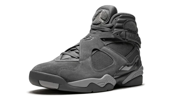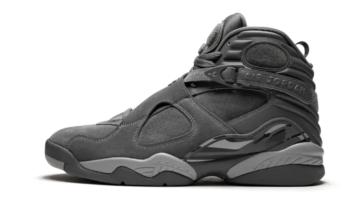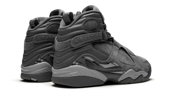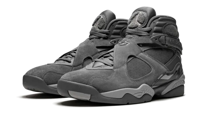 The Air Jordan 8 "Cool Grey" is a clean, premium look for the iconic Michael Jordan signature shoe that released in 2017. Since 2001 when it appeared on the Jordan 11, the "Cool Grey" colorway has given many classic Air Jordan models a fresh look. Fast-forward 16 years, and the tonal hue appears on a fresh Air Jordan 8 Retro. The classic silhouette receives a lifestyle twist, with the upper constructed in premium suede. All of the traditional detailing we've come to know and love from the AJ 8 for remains intact here, including the number 23 on the straps, a chenille tongue patch, and a bold graphic pattern on the mudguard.