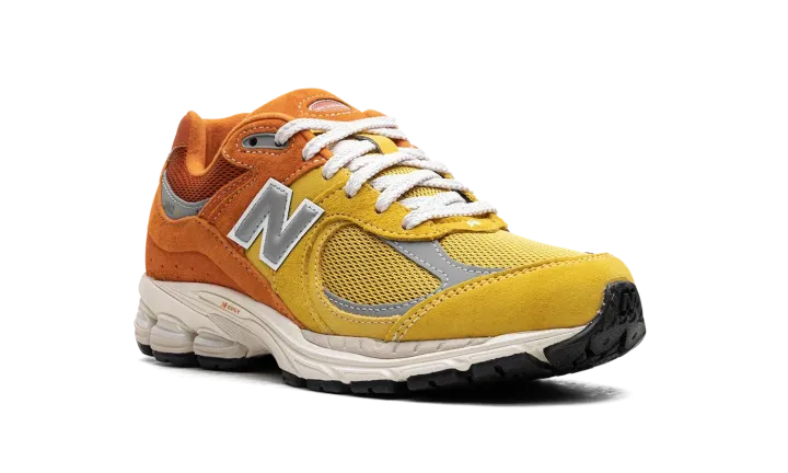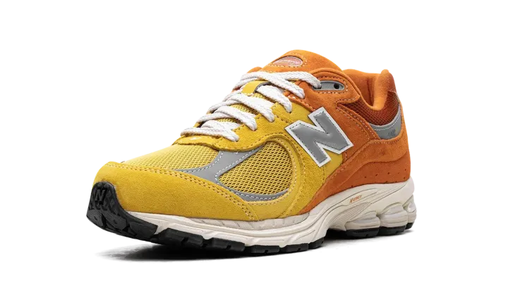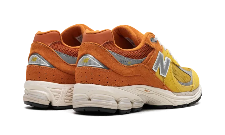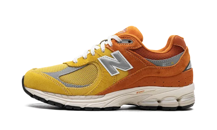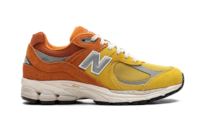 The New Balance 2002R "Ginger Lemon" is a split orange-and-yellow colorway of the lifestyle shoe. Originally released back in 2010, the New Balance 2002R was a performance running model before becoming a casual style in more recent years. The "Ginger Lemon" features a split orange-and-yellow look, with yellow mesh on the toe and forefoot, and orange mesh on the collar. The suede overlays on the forefoot and mid-panel appear in yellow, while the suede overlays on the back of the shoe are designed in orange. A grey "N" appears on the sides, while "2002R" detailing can be found on the lateral side of the heel. Underfoot, New Balance completes the look of the shoe with a vintage-looking cream N-ergy midsole. Release date: March 1, 2024