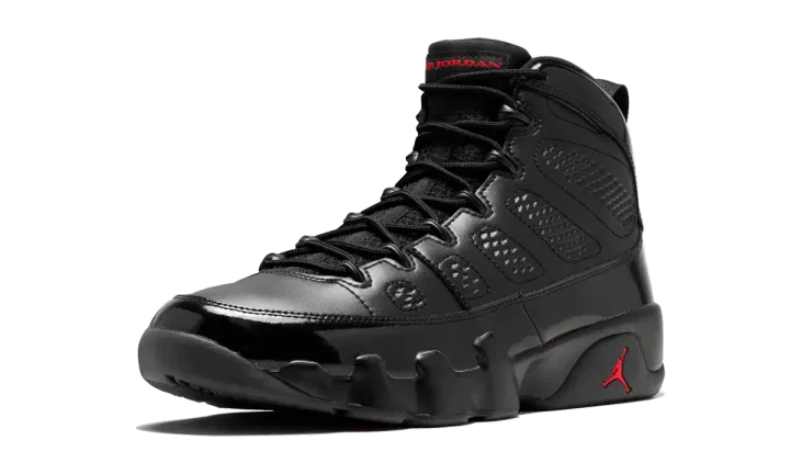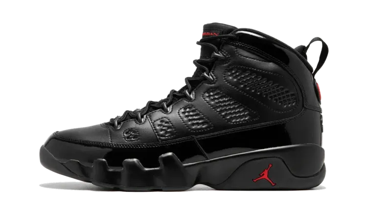 You can never go wrong with an Air Jordan retro in black and red, and this "Bred"-themed Air Jordan 9 is certainly no exception. The Air Jordan 9 "PE" returned in 2018 with a classic color scheme. Predominantly dressed in black, the clean look features a mix of full grain leather with patent leather detailing for some extra shine on the upper. The bold red accents are selectively used on the branding elements surrounding the shoe, which maximizes their visual impact.
