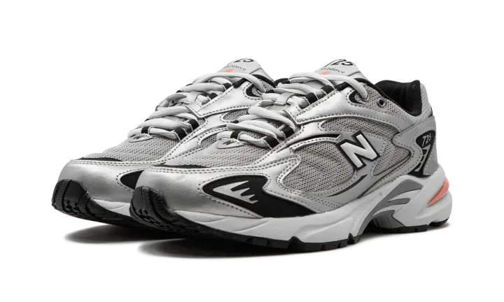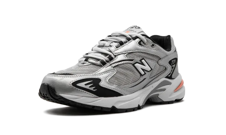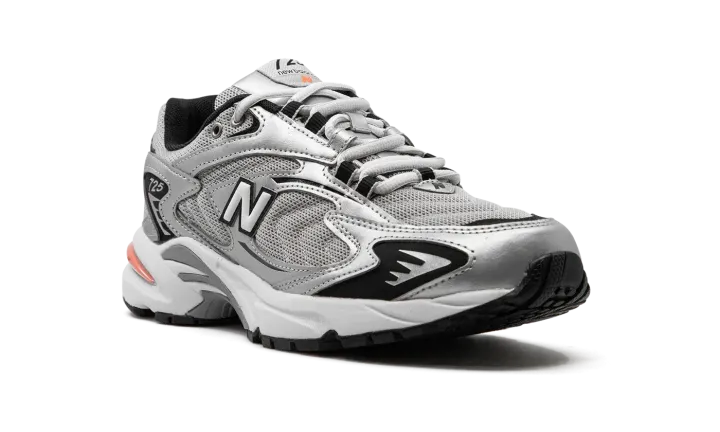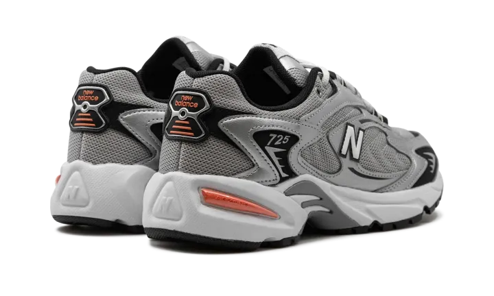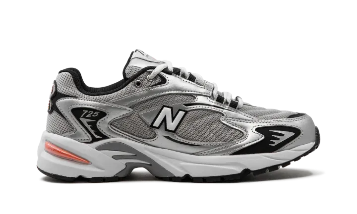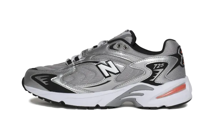 The New Balance 725v1 "Metallic Silver" is a grey-based colorway of the retro-inspired shoe. Inspired by performance running shoes from the 2000s, the New Balance 725v1 has a Y2K-style design that looks both retro and modern. The "Metallic Silver" colorway features a Raincloud-colored mesh base and Metallic Silver synthetic leather overlays. A white "N" logo outlined in black appears on either side of the shoe, while "725" detailing is seen on the lateral side of the heel, and on the tongue. New Balance's ABZORB cushioning is embedded in the midsole for all-day comfort.