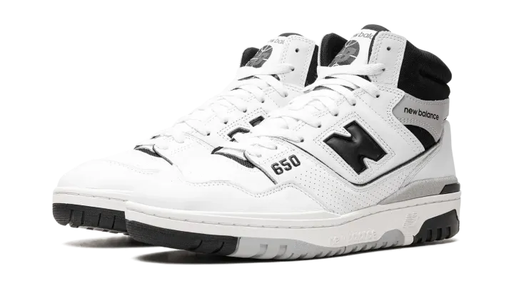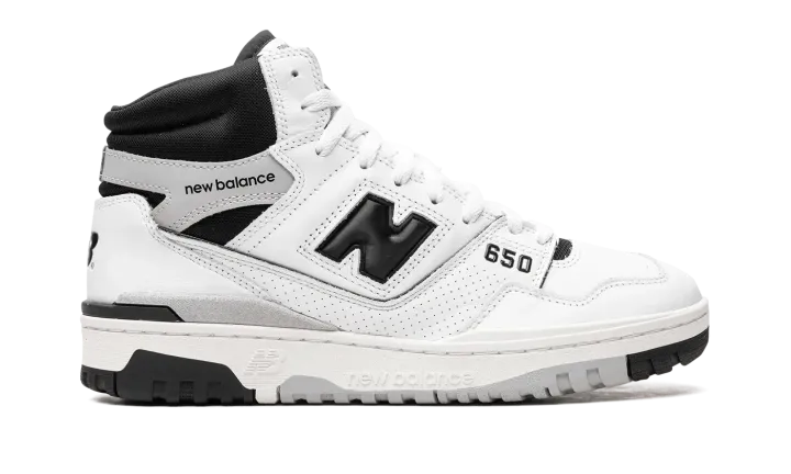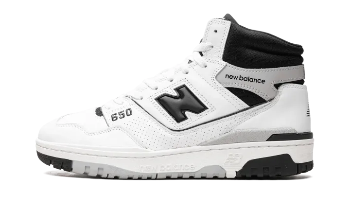 The New Balance 650 "White/Black" is a versatile and timeless colorway of the retro basketball shoe. The New Balance 650 is essentially a high-top version of the New Balance 550 sneaker that New York based clothing brand Aimé Leon Dore helped re-issue in 2020. The 650 features many of the same vintage-inspired details as the 550. Here, on the "White/Black" 650, white leather appears on the shoe's upper. A contrasting black "N" logo is located on the sides. NB" branding is found on the heel and classic "New Balance 650" detailing is located on the tongue tag. Release date: April 20, 2023