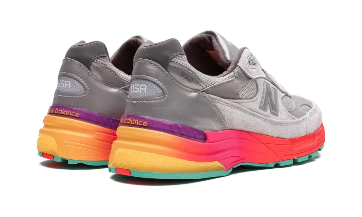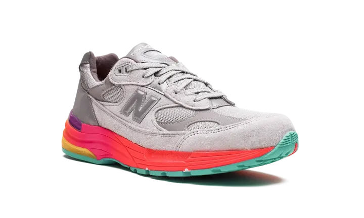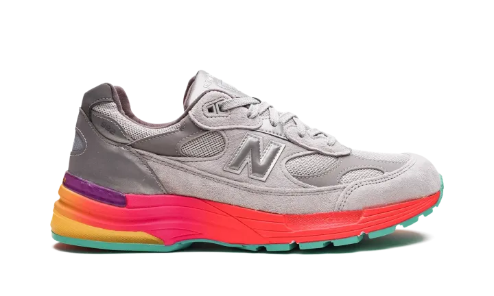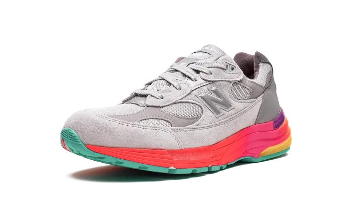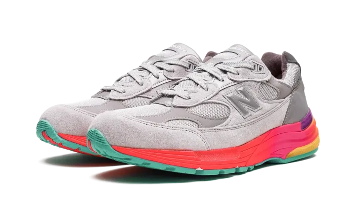 The New Balance 992 "Grey/Multicolor" is a colorway of the classic sneaker with a combination of neutral and bold accenting. The New Balance 992 is a popular style from the brand's "Made in USA" line that's overseen by Aimé Leon Dore founder and lead designer Teddy Santis. The "Grey/Multicolor" taps into the 992's original "Grey" colorway with a mostly monochromatic grey upper with a grey mesh base and tonal suede overlays. Underfoot, an eye-catching, colorful rubber midsole and teal-colored outsole contrast the look in a bold way.
