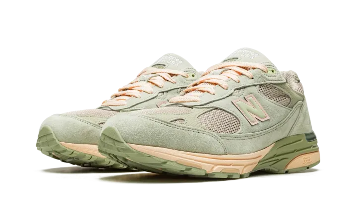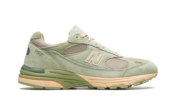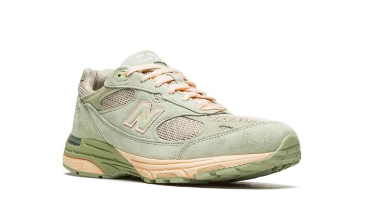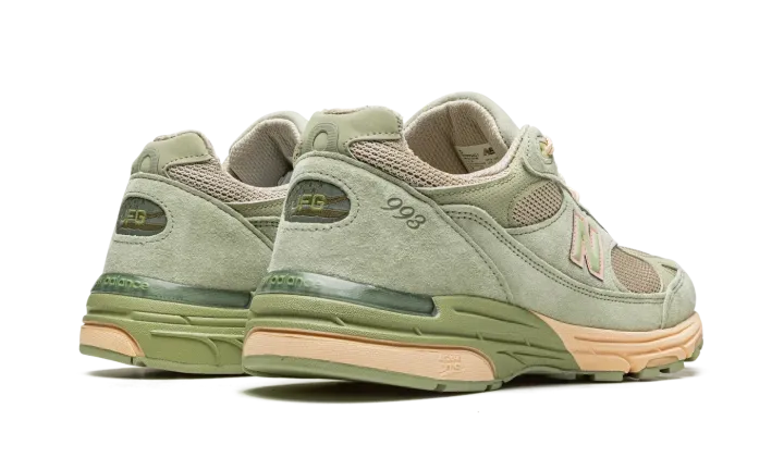 The Joe Freshgoods x New Balance 993 "Performance Art - Green Sage" is one of three colorways of the lifestyle shoe by the Chicago based streetwear and sneaker designer and New Balance released in October 2022. Since launching his debut collaboration with New Balance in 2020, Joe Freshgoods has been among the busiest and most respected collaborators in footwear. The Chicago native's "Performance Art" New Balance 993 collection continues his run of strong releases. The shoe features Green Sage suede overlays on a grey mesh base. A tonal "N" logo appears on the sides and "JFG" branding is found on the heel. "Made in USA" detailing is embroidered on the blue suede tongue. New Balance's ABZORB cushioning technology is embedded in the sage-and-cream midsole. Release date: October 21, 2022