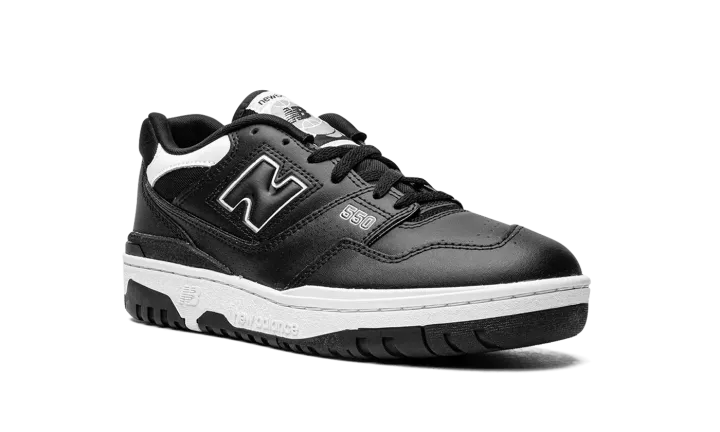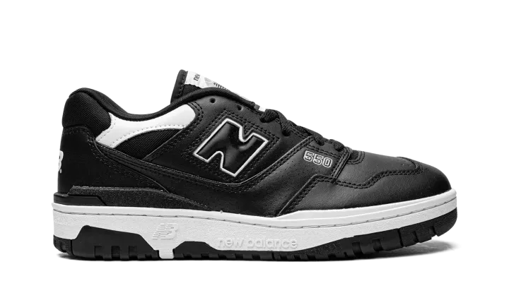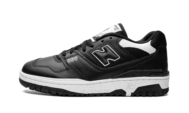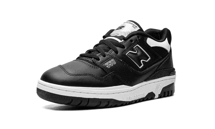 The New Balance 550 "Black/White" is a two-tone colorway of the vintage basketball and lifestyle shoe that can be worn with a variety of outfits. The New Balance 550 returned in 2020 after Aimé Leon Dore, the New York City based clothing brand, began collaborating with New Balance on retro-inspired colorways of the sneaker. Here, the "Black/White" updates the classic silhouette with a black leather construction that includes tonal leather overlays. A black "N" logo can be found on the mid-panel while "NB" branding appears on the heel. Additional logo detailing includes "550" embroidery on the forefoot and "New Balance" insignia on the tongue. The white rubber midsole is paired with a black outsole.