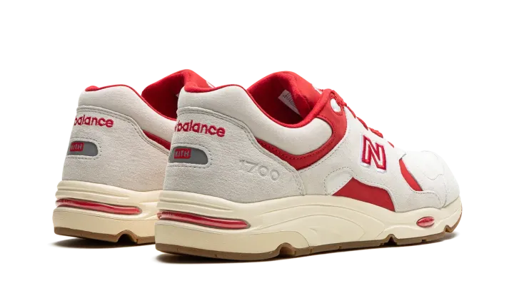The Kith x New Balance 1700 "Canada - White/Red" is a colorway of the casual sneaker designed by Ronnie Fieg's boutique and New Balance that honors the Canadian Flag. From Kith and New Balance's "Canada Pack," the "White/Red" New Balance 1700 was created to celebrate the opening of Kith's Toronto location. A white-and-red "N" logo appears on each side of the shoe while "1700" detailing is seen on the lateral heel. Co-branding appears on the heel and "1700" insignia is found on the tongue. An off-white-colored sole gives the shoe a decidedly vintage look. Release date: September 25, 2023