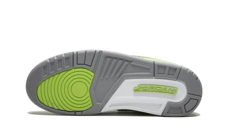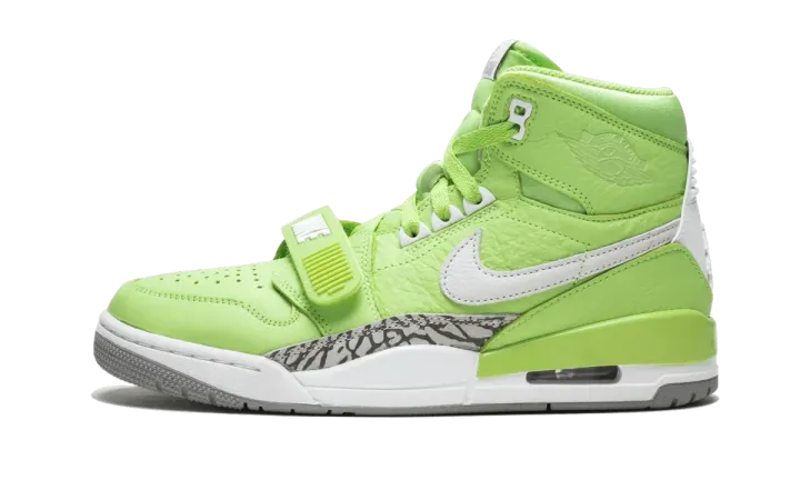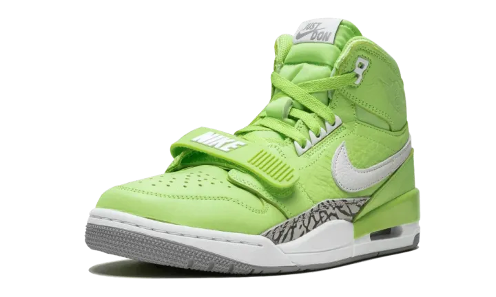 In 2018 Don C teamed up with Jordan Brand once again for the Jordan Legacy 312. This time it wasn't just a special colorway of a classic model Don C worked on. The luxury sportswear creator designed his very own silhouette. Taking elements from a few of Don C's favorite retro basketball sneakers, the Legacy 312 combines the Air Jordan 1 and Air Jordan 3, while also referencing the Nike Air Force STS with the midfoot elephant print panels and the Air Alpha Force Low with the midfoot strap. This Legacy 312 "Ghost Green" available here features a unique light green shade across the leather upper with white and grey accents.