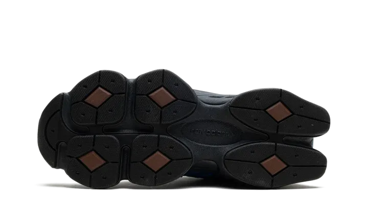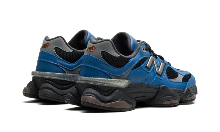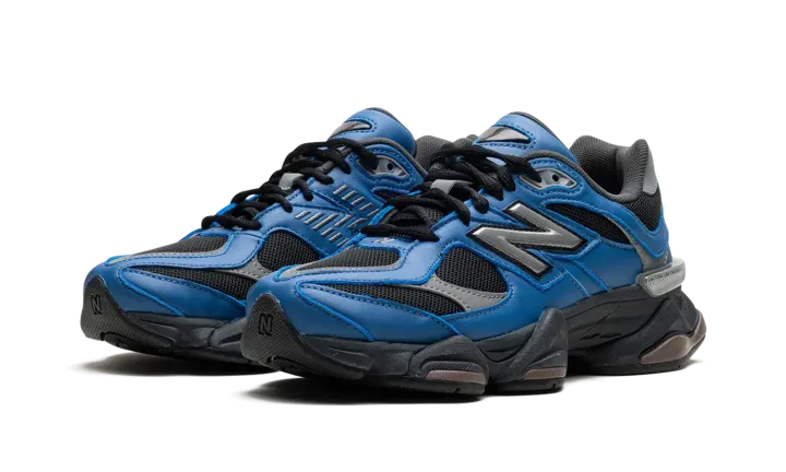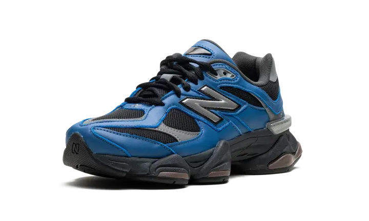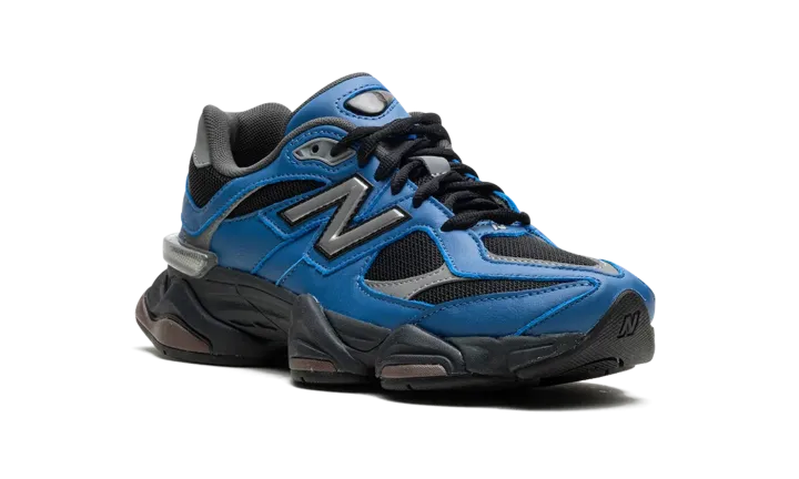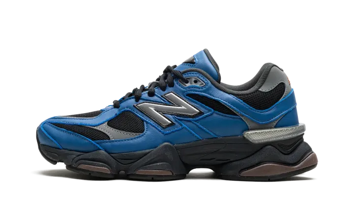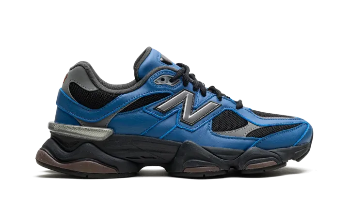 The New Balance 9060 "Blue Agate" is a colorway of the sneaker with a retro-yet-modern look with eye-catching blue details. The 9060 features an oversized, chunky rubber sole that gives the shoe a contemporary look. Here, the "Blue Agate" colorway is constructed with a black mesh base contrasted with rich blue leather overlays. An oversized silver "N" logo appears on the mid-panel. Grey and dark brown detailing is found throughout the upper and midsole. As mentioned, the shoe is mounted on an oversized, dual-density midsole featuring ABZORB and SBS cushioning.