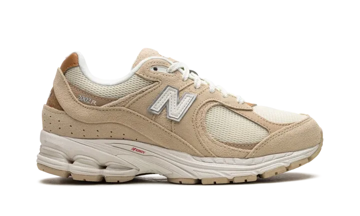 The New Balance 2002R "Sandstone" is a mostly tan colorway of the retro running shoe that can be worn with anything. The versatile "Sandstone" 2002R features a cream mesh base with Sandstone-colored suede and leather overlays. A contrasting white leather "N" logo appears on the sides while "2002R" branding is found on the lateral side of the collar. "New Balance" branding appears on the tongue. An ABZORB cushioned midsole ensures comfort. Release date: March 16, 2023