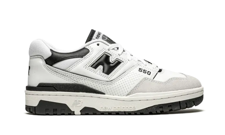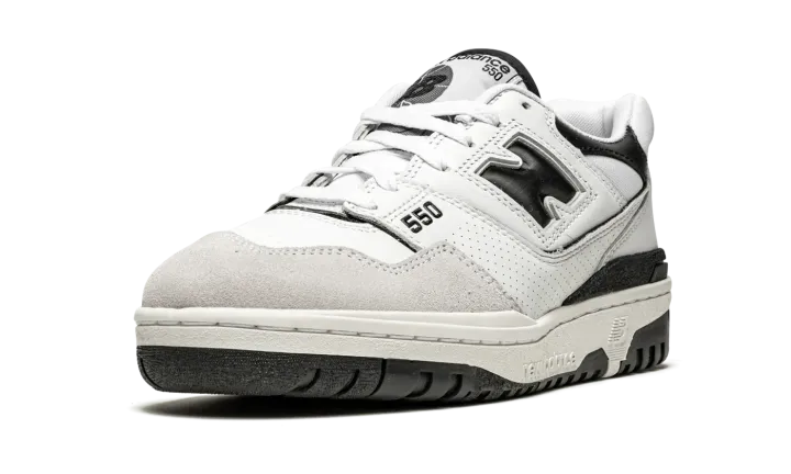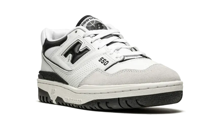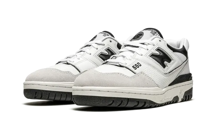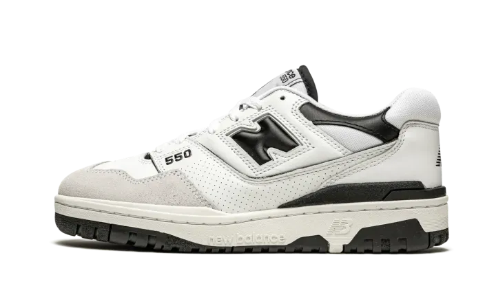 The New Balance 550 "White/Black" is a versatile colorway of the once-obscure retro basketball shoe that returned in a big way in 2020. One of the most unexpected success stories in recent sneaker culture history, the New Balance 550 rose from the depths of irrelevance to become one of 2020's most desirable shoes thanks to Teddy Santis and his Aimé Leon Dore streetwear brand's unearthing of the model for its collaboration with New Balance. Here, the "White/Black" features a combination of smooth and dotted white leather on the upper. Both the "550" and "N" branding on the forefoot and mid-panel, respectively, appear in black leather. Classic "NB" detailing in black graces the heel. A grey suede panel appears on the toe and a black leather overlay can be found over the white mesh collar. Underfoot, New Balance gives the rubber midsole a pre-yellowed look as a salute to the old school vibe of the basketball shoe. Release date: May 7, 2021.