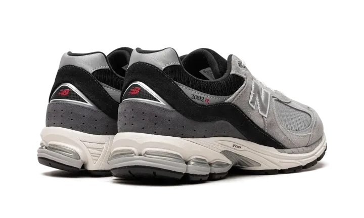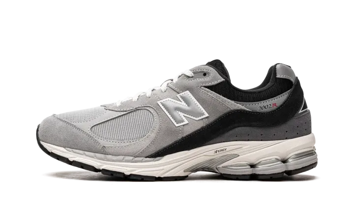 The New Balance 2002R "Slate Grey/Black" is a colorway of the popular retro running and lifestyle shoe with a neutral look. The "Slate Grey/Black" 2002R features a Slate Grey mesh base with tonal suede and leather overlays. A black suede overlay appears on the heel of the shoe and extends down to the midsole through the mid-panel. Grey "N" branding appears on the side of the shoe. "2002R" and "NB" logos land on the lateral side of the heel and on the back of the shoe, respectively. An N-ergy cushioned midsole provides a comfortable ride.