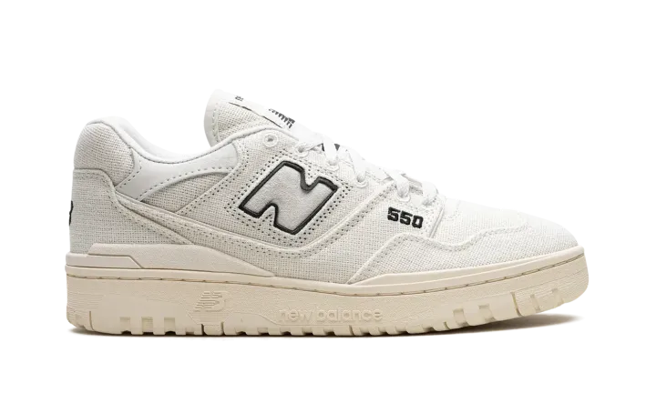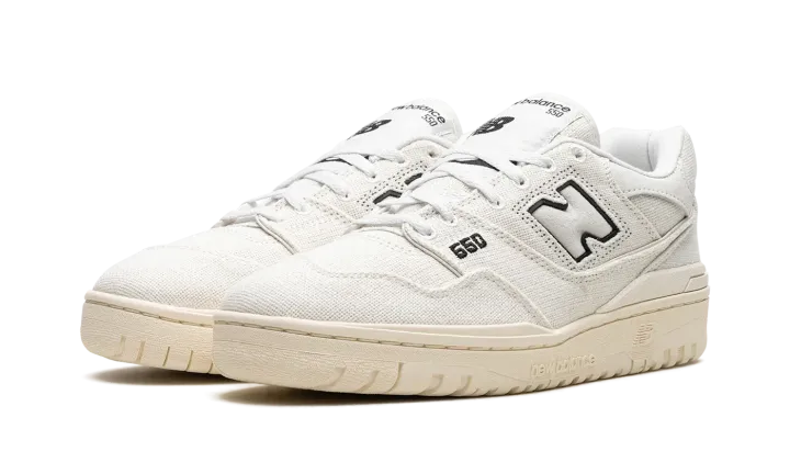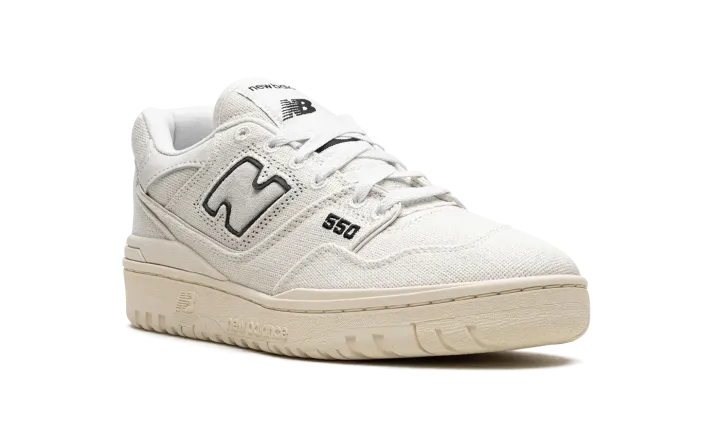The New Balance 550 "Hemp" is a colorway of the retro basketball shoe constructed with hemp. The "Hemp" 550 features a Sea Salt hemp upper with tonal overlay panels. A tonal "N" logo can be seen on the sides of the shoe. A black "550" logo is embroidered on the lateral side of the forefoot. Black "NB" branding is embroidered on the heel. A classic "New Balance" graphic is found on the tongue. The 550 "Hemp" features an aged-looking rubber midsole to complete the look. Release date: June 1, 2023
