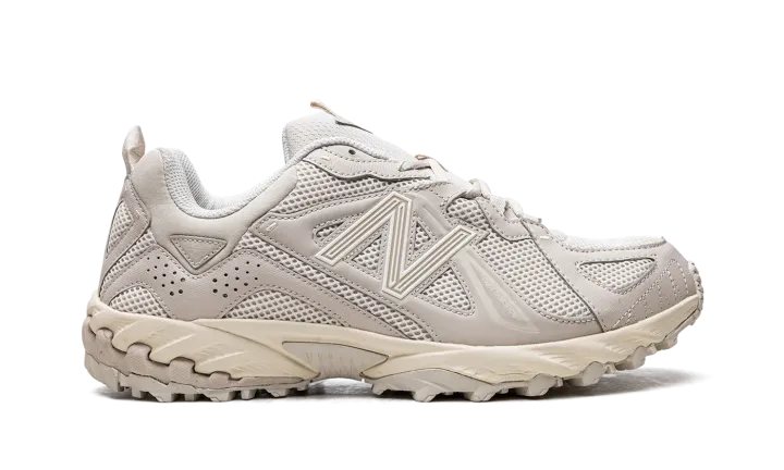 The New Balance 610T "Timberwolf" is a monochromatic, cream-colored design of the classic performance trail shoe. Debuted back in 2012, the New Balance 610T was brought back by the Boston sneaker company a decade later in lifestyle-based colorways. Here, the "Timberwolf" gives the shoe a versatile appearance with its all-cream-everything look. Both the shoe's mesh base and leather overlays are rendered in what New Balance calls Timberwolf, or light grey. A tonal "N" logo can be found on either side. The laces and interior are also designed in Timberwolf. Underfoot, the shoe features a cream ABZORB cushioned midsole that provides a comfortable ride whether on the trail or pavement.