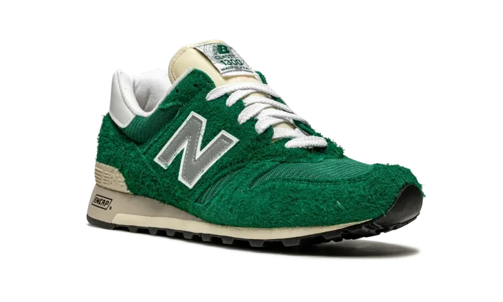 The Aime Leon Dore x New Balance 1300 "Green" is a continuation of the popular collaboration between the New York City streetwear and fashion brand and the heritage footwear manufacturer. One of two colorways designed by Teddy Santis, founder of Aime Leon Dore, the New Balance 1300 "Green" is highlighted by the model's hairy green suede upper. Lightweight tonal mesh forms the base of the shoe and can be found on the toe, mid-panel, and collar. A light grey reflective "N" logo graces both sides of the shoe and white "New Balance" branding is embroidered on the heel. Green "New Balance" insignia dots the branding tag stitched onto the cream nylon tongue giving the shoe a decidedly retro look. The old school design vibes continue on the ivory midsole. ENCAP cushioning technology is embedded in the midsole and provides optimal comfort.