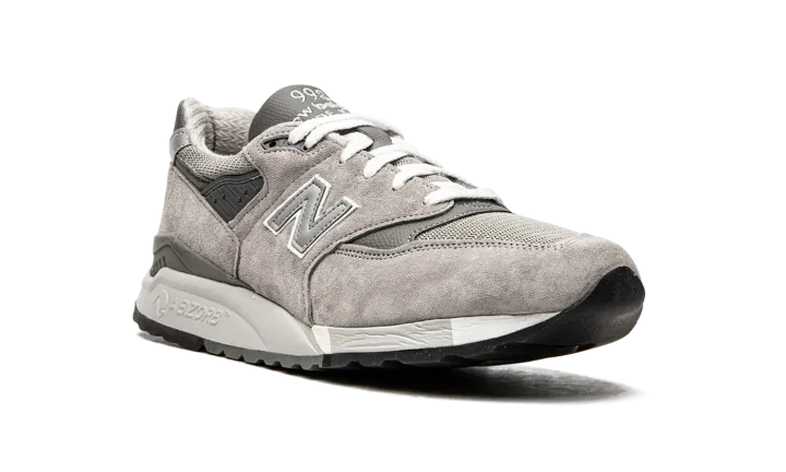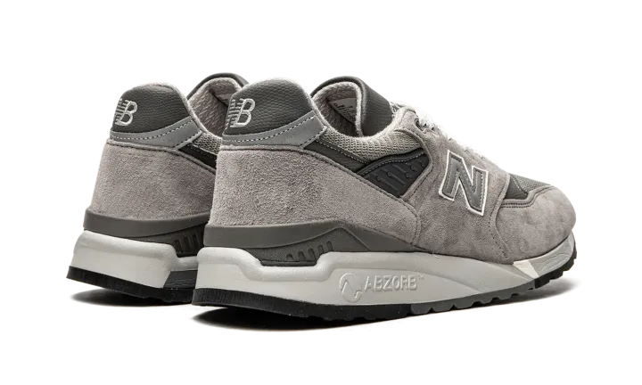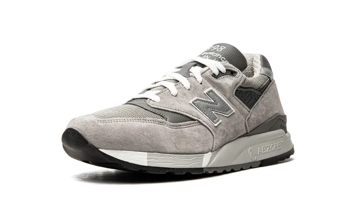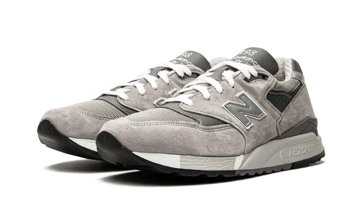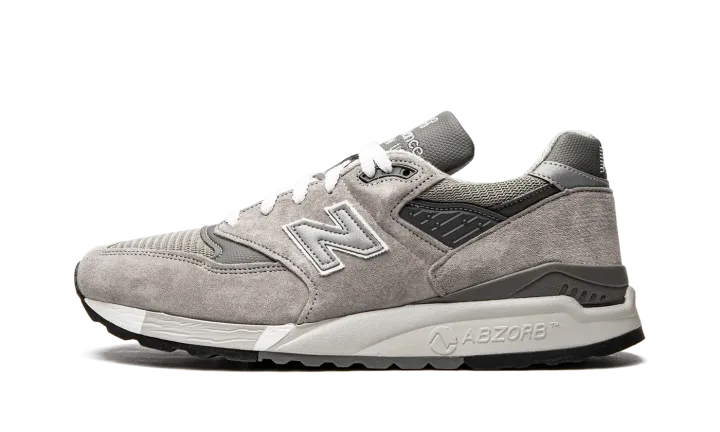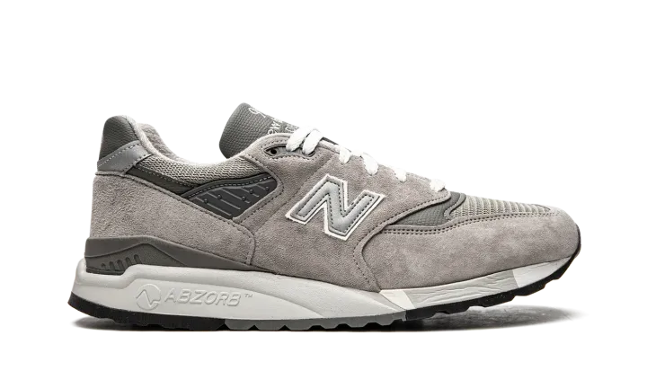 Grey/white leather/rubber M998 USA sneakers from NEW BALANCE featuring round toe, flat rubber sole, branded insole, front lace-up fastening and panelled design. These styles are supplied by a premium sneaker marketplace. Stocking only the most sought-after footwear, they source and curate some of the most hard to find sneakers from around the world..