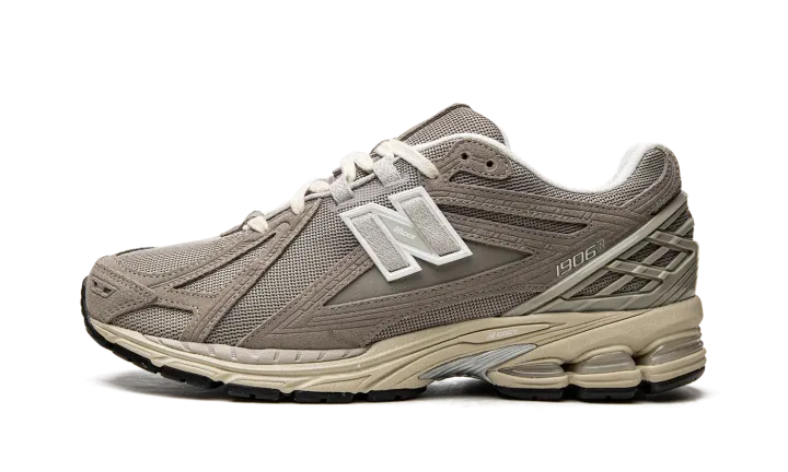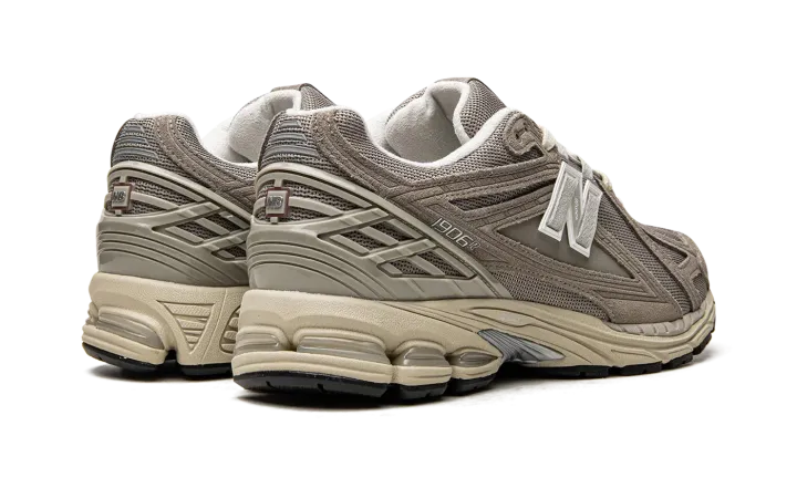 The New Balance 1906R "Beige/Cream" is a neutral-based colorway of the lifestyle shoe with a retro-modern appearance. Inspired by 2000s-era performance running sneakers, the New Balance 1906 has both a throwback and contemporary design. The shoe features a beige mesh base while tonal suede overlays appear on the forefoot, mid-panel, and heel counter. A grey "N" logo can be found on both sides of the shoe. The shoe rides on a lightweight pre-aged, cream-colored N-ergy foam cushioned midsole.