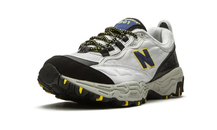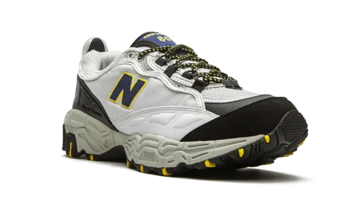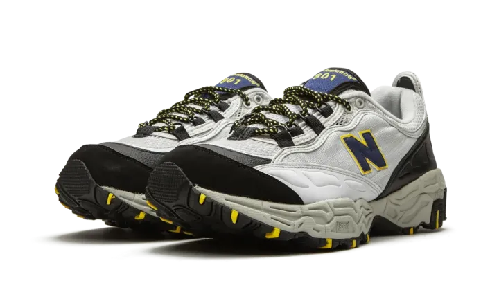 The New Balance 801 is a revamped version of the hiking-influenced trail runner that was originally released in 1998. New Balance released the revamped running silhouette in its original colorway in 2018 to celebrate the 20th anniversary of the 1998 style. The sneaker's upper is wrapped in light grey with black panelling around the heel and toe box and yellow pops of color on the tongue, laces, and outsole. The New Balance running sneaker is then finished with a traction-focused outsole tread and ABZORB midsole cushioning.