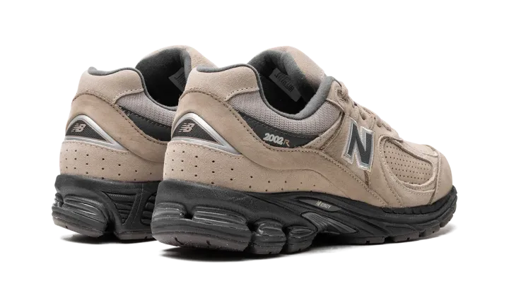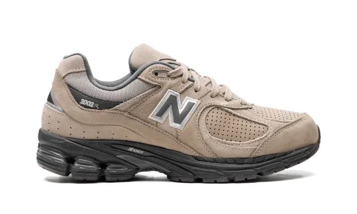 The New Balance 2002R "Driftwood" is a colorway of the casual shoe with earth tone accents. Debuted in 2010, the 2002R was originally a performance running shoe before becoming a lifestyle sneaker beginning in the 2020s. The "Driftwood" colorway features a white mesh base with Driftwood-colored suede overlays on the mid-panel and eyelets. Tan suede overlays can be found on the toe and sides. Grey "N" branding appears on both sides of the shoe. "2002R" detailing is found on the lateral side of the collar. An N-ergy cushioned midsole in black provides all day comfort. Release date: October 6, 2023