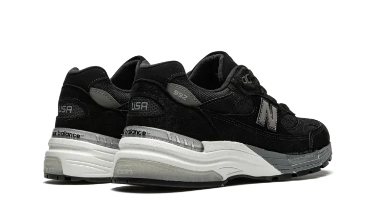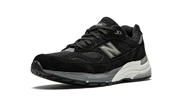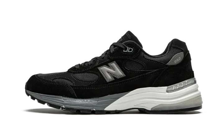 The New Balance 992 "Black/Grey" features a stealthy color scheme on the classic running shoe that is one of the most comfortable lifestyle models available today. Soft black suede overlays across the forefoot, mid-panel, collar, and mudguard are contrasted by a tonal engineered mesh that forms the base of the shoe. New Balance's signature "N" branding graces the mid-panel while "992" and "Made in the USA" cover the collar and tongue, respectively. The look is finished off with ENCAP and ABZORB technology packed into the sole, both of which provide excellent protection and all-day comfort.