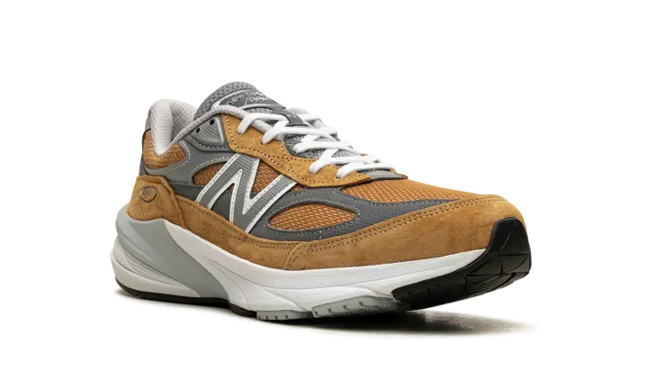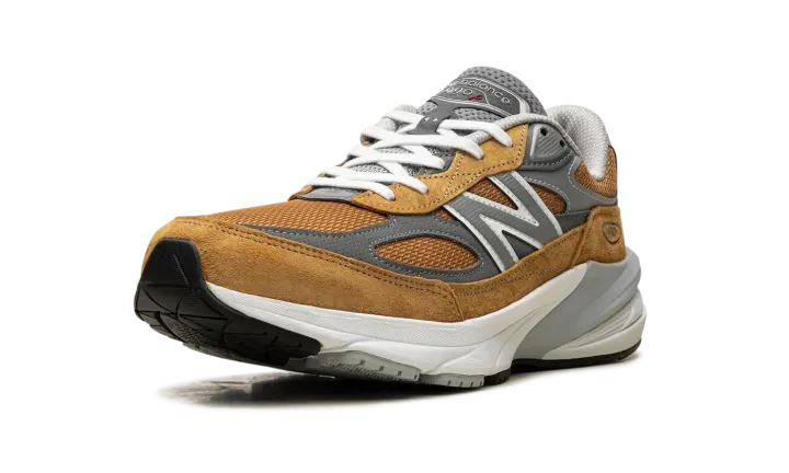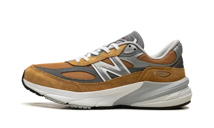 The New Balance 990v6 "Wheat/Silver" is a colorway of the lifestyle shoe with a versatile, autumn-inspired look. Debuted in 2023, the New Balance 990v6 was designed by Aimé Leon Dore founder Teddy Santis as part of the New Balance "Made in USA" line. Here, the shoe features an autumn-ready color palette with two shades of Wheat on its design. The mesh base appears in a dark shade of Wheat, while the suede overlays are designed in a slightly lighter shade of the golden hue. A classic Silver "N" for New Balance appears on either side and "New Balance" branding can be seen on the tongue. Underfoot, comfortable ABZORB cushioning with FuelCell and ENCAP technology in the shoe's midsole ensure a comfortable ride. Release date: April 1, 2024