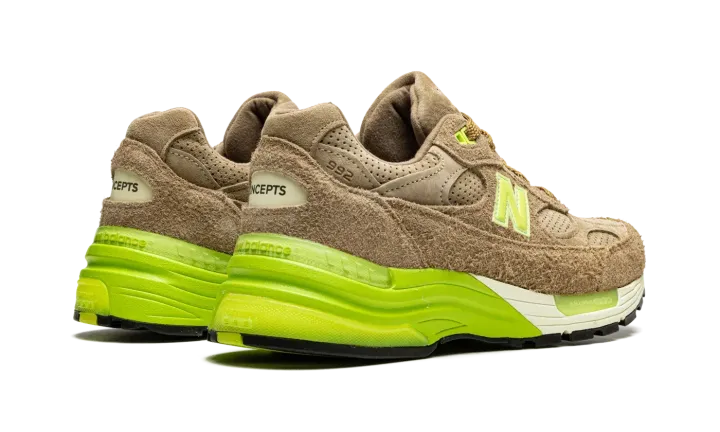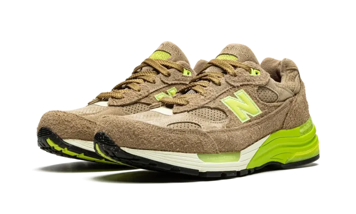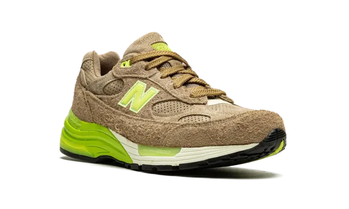 Celebrate sneaker culture with the Concepts x New Balance 992 "Low Hanging Fruit." This collaboration with the Boston boutique is inspired by the kiwi fruit's introduction to the West. Featuring a brown suede upper reminiscent of the kiwi's skin, lime accents, and a strawberry-printed insole nodding to 90s kiwi-strawberry drinks, this shoe is a unique tribute to sneaker history.