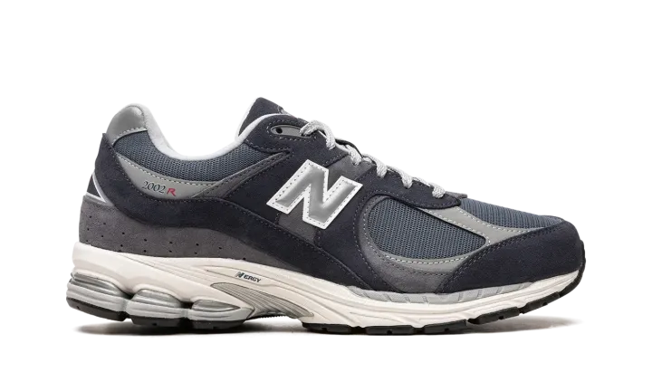 The New Balance 2002R "Eclipse Blue" is another versatile colorway of the retro running shoe, this time with blue-and-grey accents. The New Balance 2002R is one of the brand's most popular and essential models, and it's easy to see why in this "Eclipse Blue" style. The colorway features an Eclipse Blue mesh base with navy and green suede and leather overlays. A grey "N" logo appears on the sides and "2002R" branding is seen on the lateral side on the collar. Underfoot, the shoe is mounted on a cream N-ergy cushioned midsole.