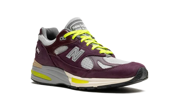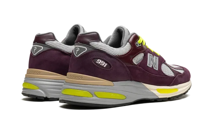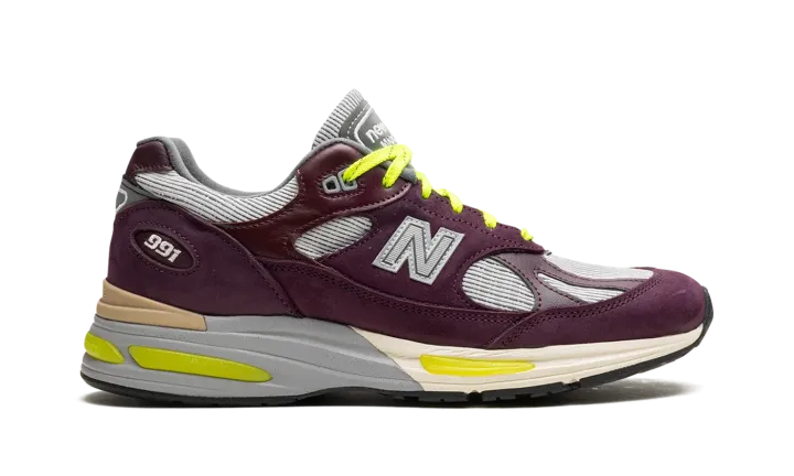 The Patta x New Balance 991v2 "Pickled Beet" is a collaboration by the Amsterdam-based streetwear brand and New Balance on the premium lifestyle shoe. Produced in New Balance's famed United Kingdom factory, the Patta co-designed New Balance 991v2 features top-level materials and craftsmanship. Specifically, the shoe has burgundy pigskin suede and leather overlays and a silver paneling base. A silver "N" logo can be found on the mid-panel, while dual "Patta" and "New Balance" logos appear on the tongue. Eye-catching, Volt-colored laces bring a unique look to the shoe. Underfoot, the black rubber outsole is equipped with New Balance's FuelCell cushioning for a comfortable, responsive ride. Release date: December 8, 2023