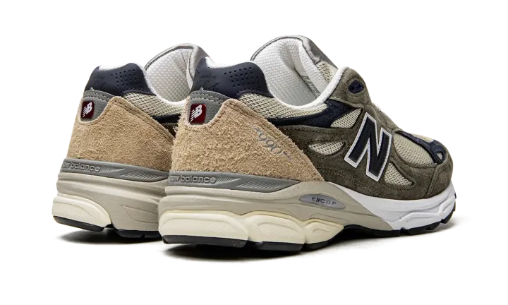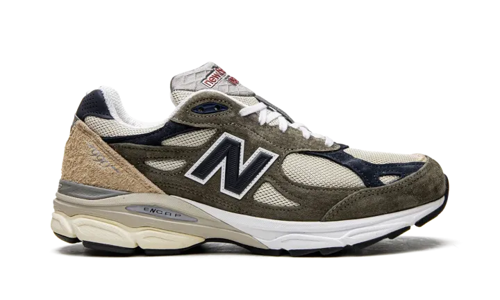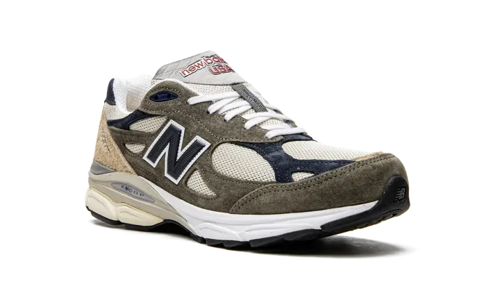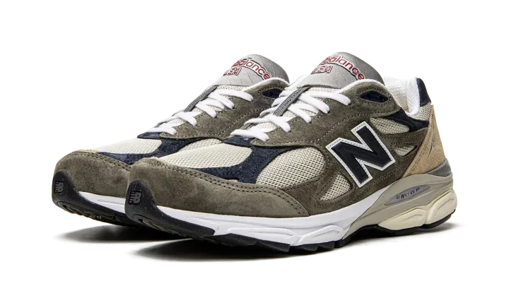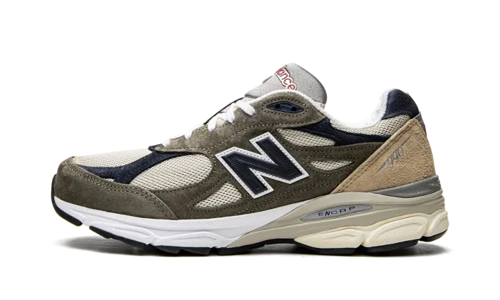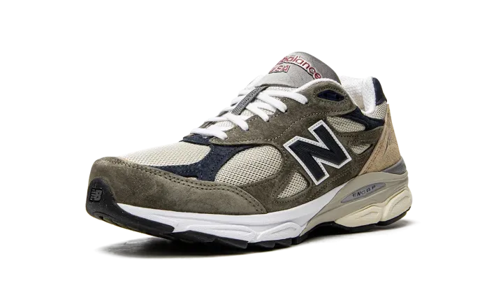 The New Balance 990 V3 "Olive" is a popular colorway of the lifestyle shoe from New Balance's collaboration with Aimé Leon Dore founder Teddy Santis. In 2021, Santis was named the Creative Director of New Balance's "Made in USA" collection and, a year later, the New York-based designer released his debut collection. The 990 V3 in "Olive" features an off-white mesh base with olive green pig suede overlays. A navy "N" logo appears on the sides. A tan suede overlay with silver "990" detailing on the lateral side is found on the heel. Classic "New Balance 990" branding appears on the tongue in red lettering. An ENCAP cushioned midsole provides a comfortable ride. Release date: October 27, 2022