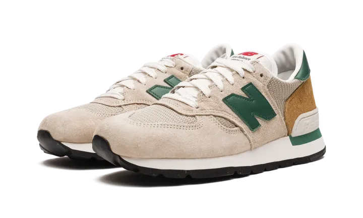 The New Balance 990 Made in USA "Tan/Green" is another casual and classic colorway of the premium lifestyle shoe from Teddy Santis and New Balance's "Made in USA" line. New Balance's "Made in USA" collection received a boost in popularity when it was announced that Aimé Leon Dore founder and lead designer Teddy Santis would take over the reins of the line beginning in 2021. Here, the "Tan/Green" 990 is given a makeover with a tan mesh base with tonal suede overlays throughout. A green leather "N" logo appears on the sides. "New Balance" branding is found on the silver leather heel overlay. Classic "New Balance" detailing is printed on the tongue tag.