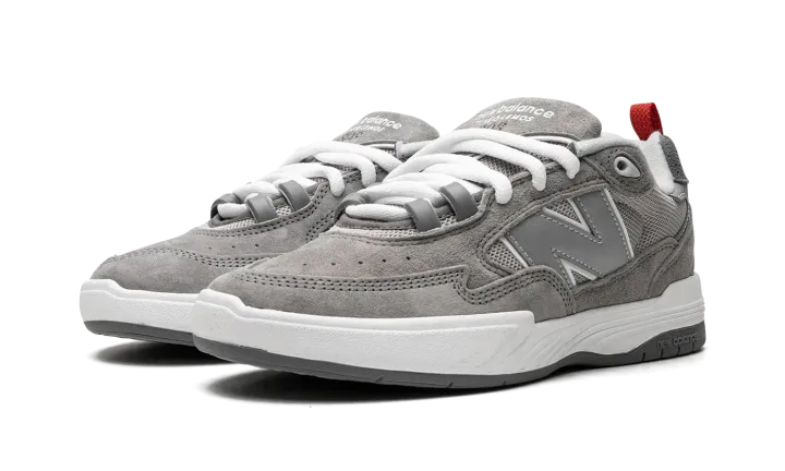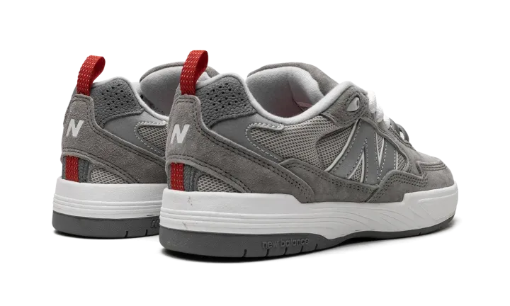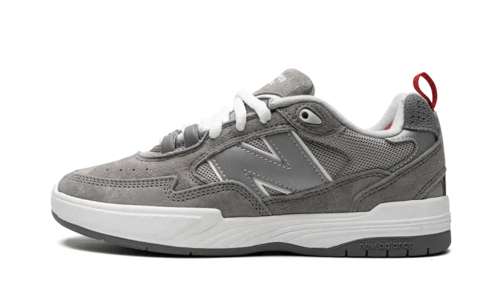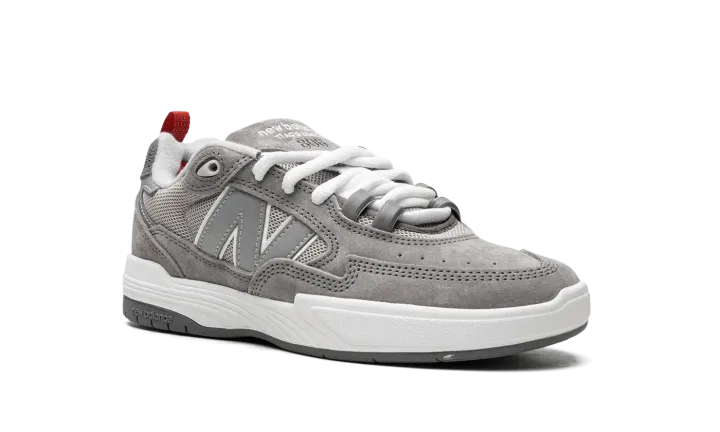 The Tiago Lemos x New Balance 808 "Grey Day" is a colorway of the pro skater's signature shoe with New Balance Numeric from the brand's "Grey Day" collection. New Balance's "Grey Day" event celebrates the history of the brand's "Grey" colorway. Here, Tiago Lemos's signature 808 model receives a grey-based update as part of the collection. The shoe features grey mesh on the sides and grey suede on the toe and on the overlays throughout the design. A grey "N" logo appears on the mid-panel. "New Balance Tiago Lemos" branding is embroidered on the tongue. A red pull tab assists with on/off wearability and can be found on the heel. Underfoot, a white foam midsole and grippy black rubber outsole complete the look. Release date: May 12, 2023