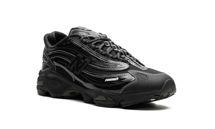The Aimé Leon Dore x New Balance 1000 "Black" is a collaboration by the clothing brand and New Balance on a black-based colorway of the retro shoe. The New Balance 1000 debuted in the late 1990s and was reintroduced in 2024. Aimé Leon Dore's "Black" colorway features a black mesh base and glossy synthetic leather overlays with white contrast stitching. White "Aimé" branding appears on the lateral forefoot, while dual branding can be found on the tongue and sockliner. Underfoot, a black ABZORB cushioned midsole completes the shoe's mostly monochromatic black appearance. Release date: June 3, 2024