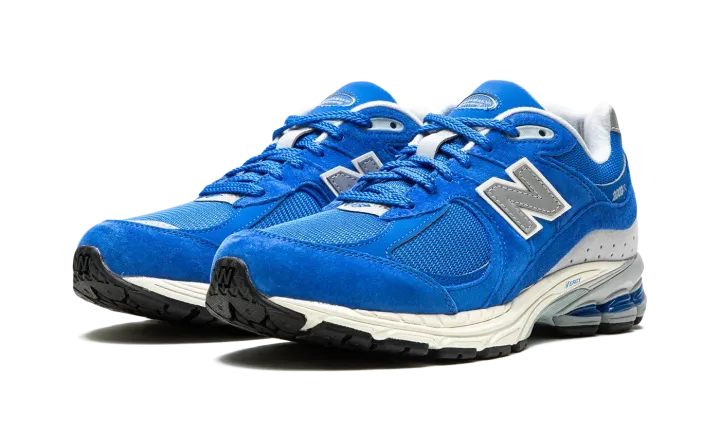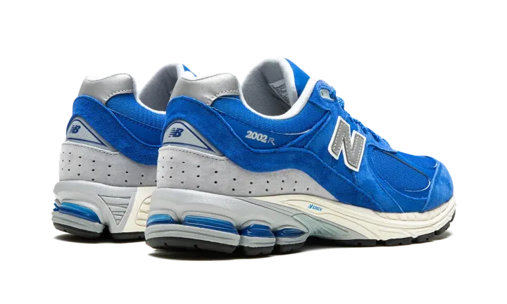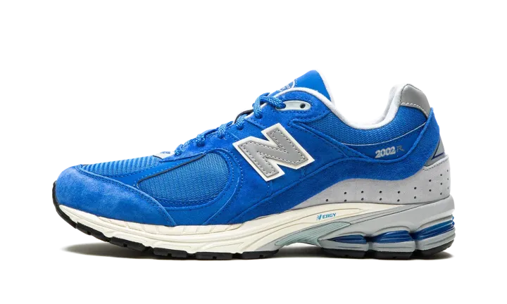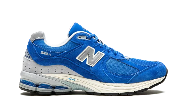 The New Balance 2002R "Royal" is a bright blue colorway of the vintage running shoe. The 2002R was originally released in 2010 and is now one of New Balance's most popular sneakers. Here, the "Royal" colorway features a blue mesh with tonal suede and leather overlays throughout its design. A silver "N" logo appears on the side. As does silver "2002R" branding on the lateral side of the heel. Small "NB" branding is embroidered on the grey panel on the back of the shoe. Underfoot, an N-ergy foam midsole provides a responsive and comfortable ride. Release date: August 13, 2022