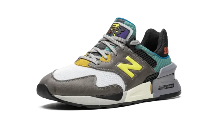 The Bodega x New Balance 997S "No Bad Days" is the good-vibes, everyday-wearing design cooked up by the good folks at the two Boston-based brands. The cheery "No Bad Days" 997S model contains a vibrant, fun-loving appearance that lifts colors from vintage '90s technical outerwear. Bodega laces the upper with hairy grey suede at the mid-panel with a bright yellow metallic "N" logo on top. A white mesh base at the forefoot with a grey suede toe cap cover the front of the design, while the lateral panel features a turquoise-colored textured pattern with black rubber design accents. The heel is covered with a black criss-cross design and "997S" appears written in red on top. The finishing touches of the "No Bad Days" 997S include a grey ABZORB and ENCAP-cushioned midsole. Release date: Fall 2019.
