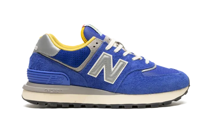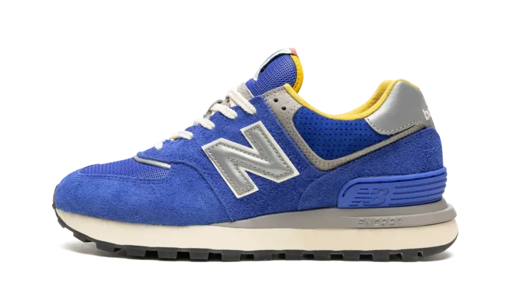 The Bodega x New Balance 574 Legacy "Blue" is a fun take on the classic running shoe by the Boston-based sneaker boutique. This premium edition of the classic 574 features a suede upper in bright blue along with perforated suede at the ankle collar and medial "N" logo. Reflective detailing is applied to the lateral "N" logo as well as the heel tab, and yellow adds more contrast at the inner lining. A special co-branded tongue tag completes the upper, while a semi-translucent black rubber outsole is found below. This blue colorway released in July 2022 along with a "reversed" yellow colorway.