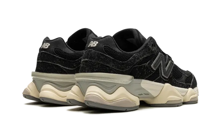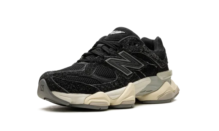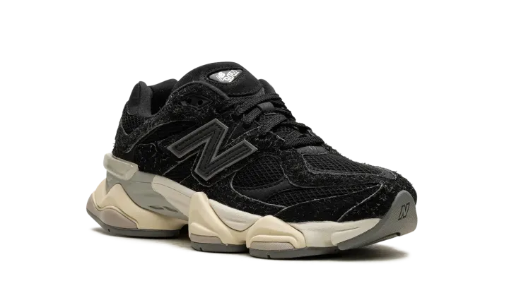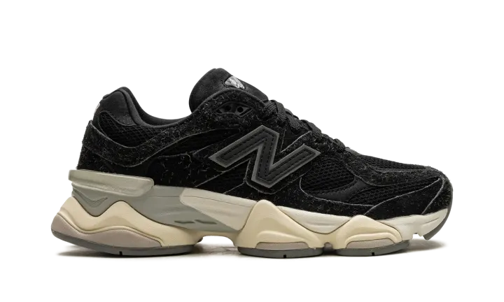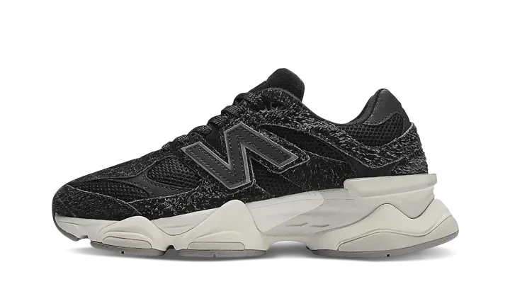 The New Balance 9060 "Black Suede" is a colorway of the popular sneaker by the Boston footwear cbrand that features hairy black suede accenting. Just as its name suggests, the "Black Suede" New Balance 9060 incorporates fuzzy black suede detailing on its design, specifically on its overlays on top of the black mesh base. An oversized black "N" logo appears on either side. A cream, light grey, and white chunky rubber midsole round out the look. Release date: July 26, 2023