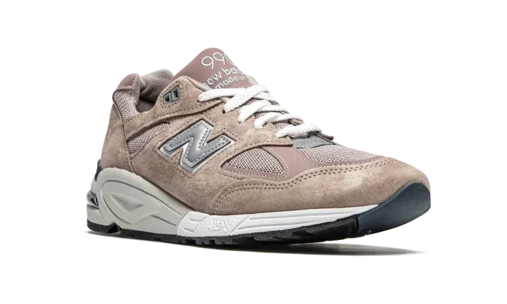 The Kith x New Balance 990 v2 "Dusty Rose" is a limited edition colorway from Ronnie Fieg's sneaker boutique and New Balance that was released in April 2020. Part of Fieg's revived "KITHSTRIKE" campaign which many a New Balance were a part of in the early 2010s, the "Dusty Rose" 990 v2 features a nostalgic arrangement of materials and colors on the stately low-top silhouette. Buttery light pink pigskin suede overlays appear on the toe, mid-panel, eyestay, collar, and heel. A slightly brighter shade of pink mesh lays beneath the suede panels and is visible on the toe, forefoot, and collar. A reflective silver "N" logo graces either side of the shoe and embroidered New Balance branding is stitched onto the tongue. Additional branding appears in the form of white embroidered "USA" detailing within a grey window on the heel. ABZORB cushioning is embedded within the forefoot of the midsole for all-day comfort.