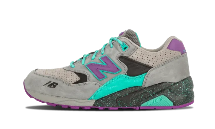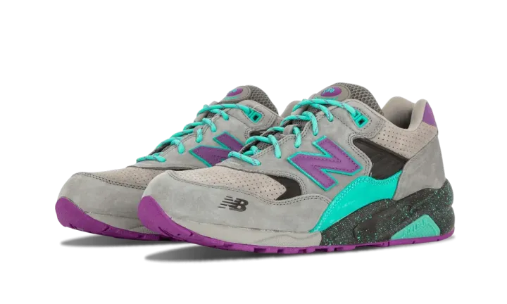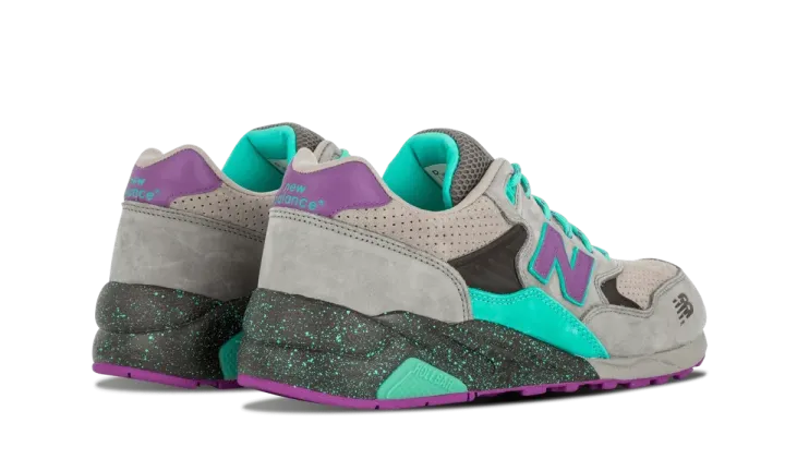 Inspired by the colors of skiing gear, sneaker shop West NYC teamed up with New Balance for this excellent edition of the MT580. The classic trail running shoe is outfitted in premium grey suede with bright accents of purple and teal.