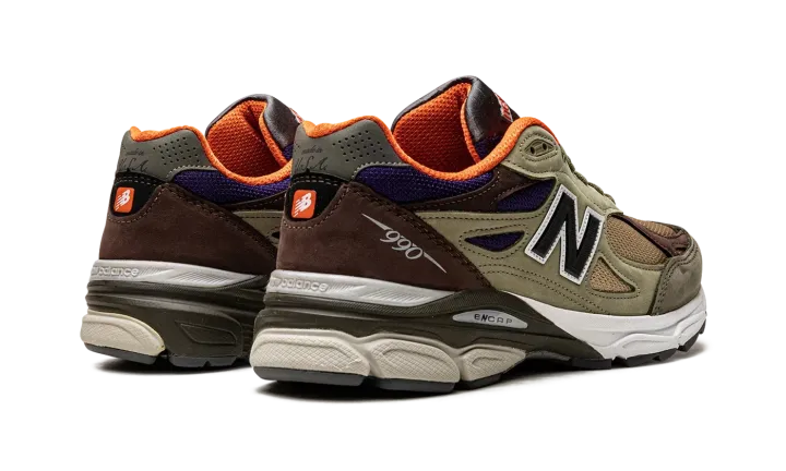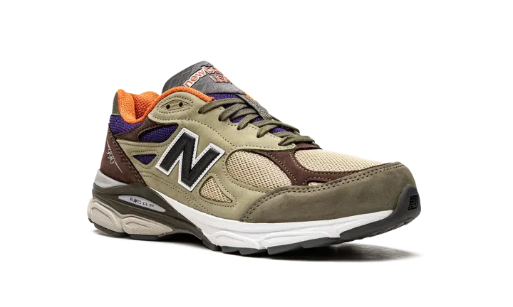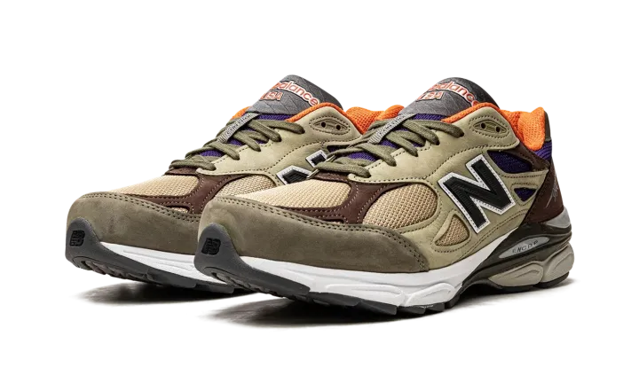 The New Balance 990 V3 Made in USA "Khaki" is a colorway of the popular casual shoe with a unique design. From New Balance's Made in USA line designed by Aimé Leon Dore founder Teddy Santis, the "Khaki" 990 V3 features a tan mesh base with tonal leather overlays on either side. Brown leather overlays are found on the toe, collar, and heel. An olive green leather panel is located on the toe and heel. Black "N" branding appears on either side of the shoe and "990" detailing is found in silver on the lateral side of the heel. "New Balance" branding dots the tongue. Underfoot, the shoe's comfortable, ENCAP cushioned midsole completes the look.