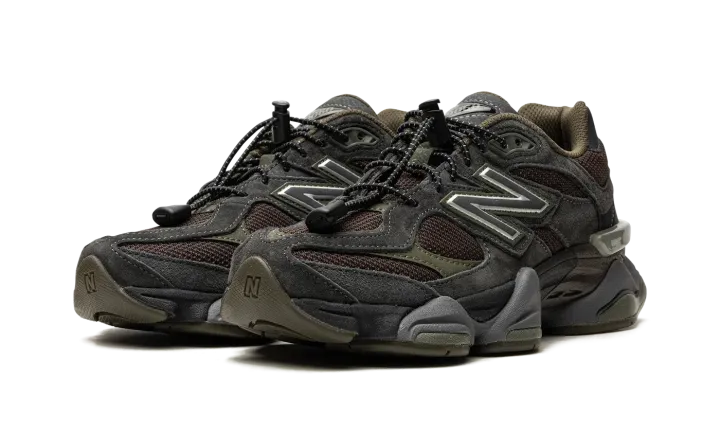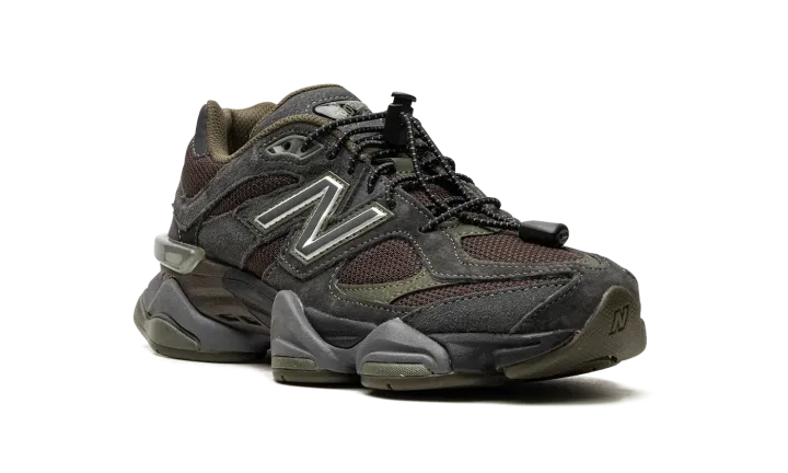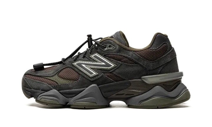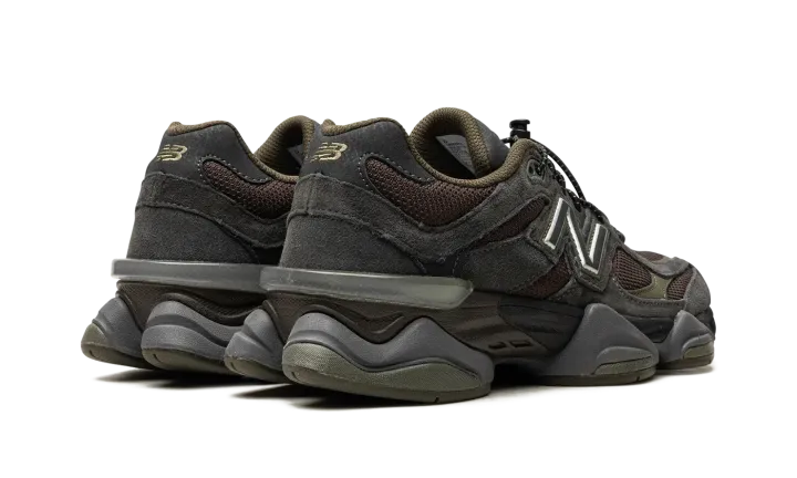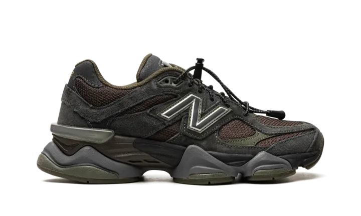 Discover the New Balance 9060 "Blacktop/Dark Moss," a retro-modern shoe with an earthy, outdoors-inspired aesthetic. Featuring a dark brown mesh base, black suede overlays, and Dark Moss accents, this shoe offers a rugged yet stylish look. Oversized "N" logos and drawstring-style rope laces complete this unique design.