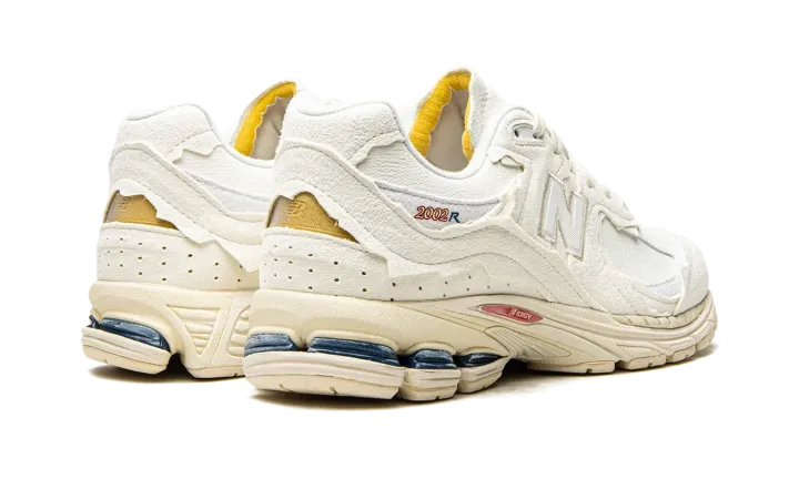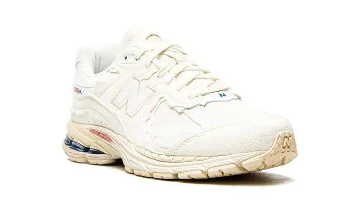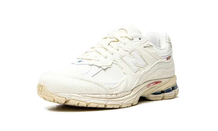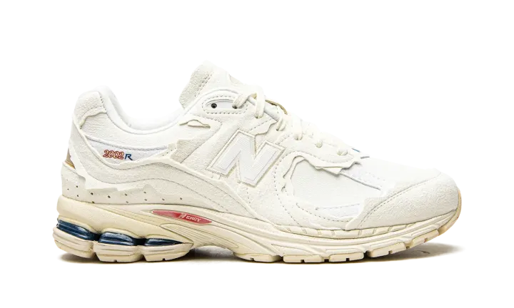 White leather 2002R "Protection Pack" sneakers from NEW BALANCE featuring embroidered logo to the side, contrasting panel detail, round toe, front lace-up fastening, branded insole and flat rubber sole. These styles are supplied by a premium sneaker marketplace. Stocking only the most sought-after footwear, they source and curate some of the most hard to find sneakers from around the world..