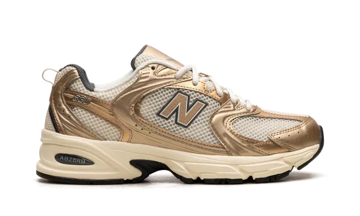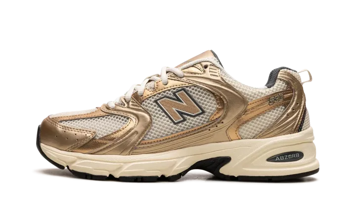 Add a touch of luxurious flair to your everyday style with the New Balance 530 "Liquid Gold." These 530 sneakers offer a fresh take on a classic running silhouette, perfect for elevating your casual look. The "Liquid Gold" colorway presents a rich and eye-catching palette, adding a touch of opulence to your step. Experience the renowned comfort and cushioning of New Balance, ensuring a comfortable ride wherever your day takes you.
