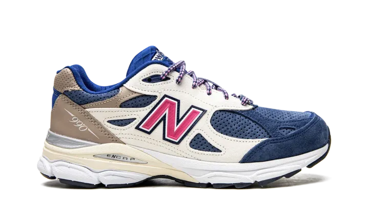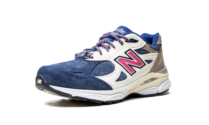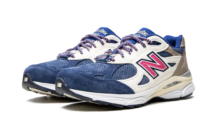 The Kith x New Balance 990 v3 "Daytona" is a special collaboration between Ronnie Fieg's sneaker boutique and New Balance in a colorway of the lifestyle shoe that celebrates both Kith's 10-year anniversary and the 990's 40-year anniversary. From a four-piece collection co-designed by Kith and New Balance, the 990 V3 "Daytona" is inspired by Fieg and New Balance's 1600 shoe of the same nickname from 2013, as it features the same color block as the now-classic release. The perforated toe and forefoot are designed in blue suede. A cream overlay appears on the mid-panel surrounding the pink "N" branding on either side. Tan accenting comes into play on the leather overlay on the collar, on the heel, and on the perforated ankle. "KXTH" branding is found on the heel. Release date: June 16, 2022